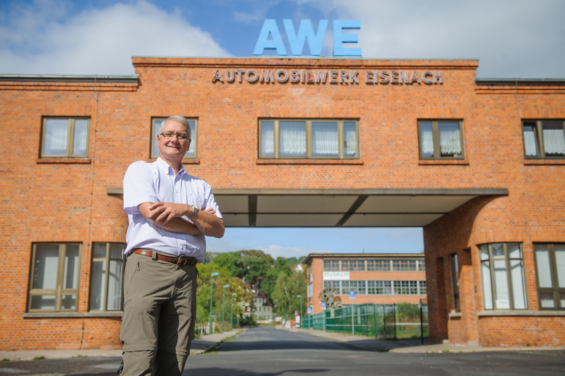 Das Torhaus, Haupteingang zum Automobilwerk in der Eisenacher Naumannstraße, steht als Symbol für mehrere, nicht mehr existierende Vorgänger. Matthias Doht (im BIld), Vorsitzender der Stiftung Automobile Welt, Eisenach.