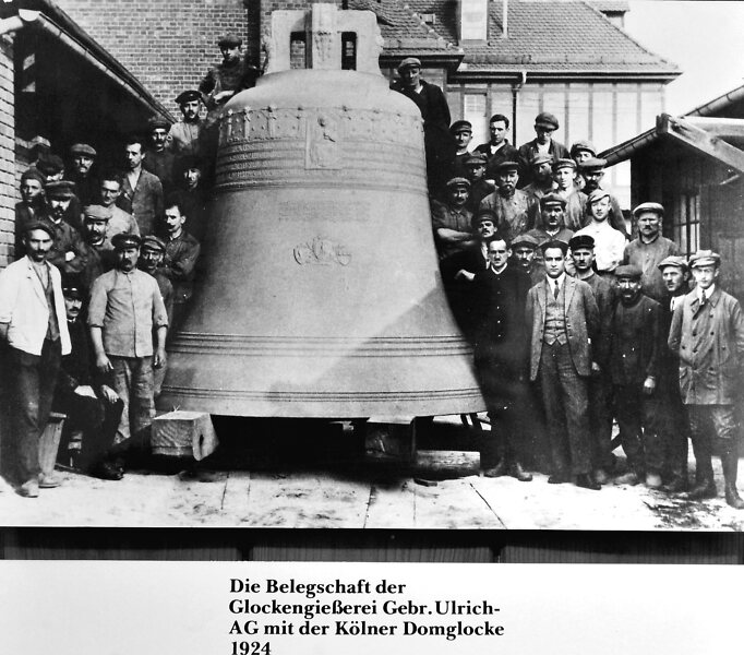 An der Petersglocke versammelt: die Belegschaft der Apoldaer Glockengießerei Gebr. Ulrich im Jahre 1924.